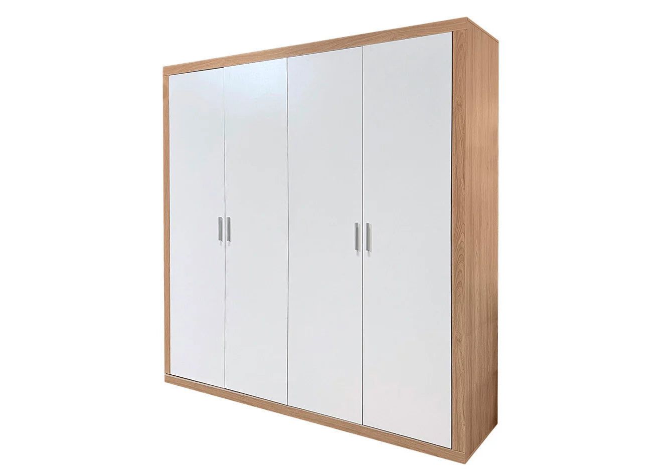 Maximiza el almacenamiento y la elegancia en tu dormitorio con nuestro amplio armario de la colección KIARA. Con cuatro puertas batientes, este armario ofrece un amplio espacio para colgar tu ropa, mientras que la balda en la parte superior proporciona un espacio adicional para organizar tus objetos personales. Añade un toque de luminosidad y modernidad a tu dormitorio, complementando cualquier estilo de decoración. Construido con materiales de alta calidad, este armario fusiona funcionalidad y belleza para ofrecerte una solución duradera y estética para tu almacenamiento. Aprovecha al máximo tu espacio y estilo con nuestro armario de la colección KIARA. Facil Montaje.