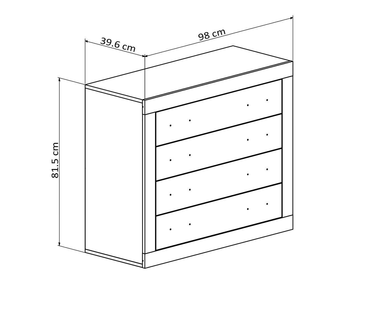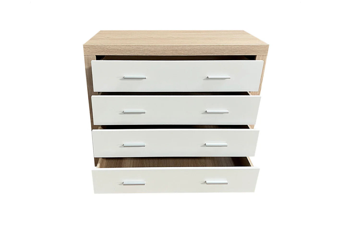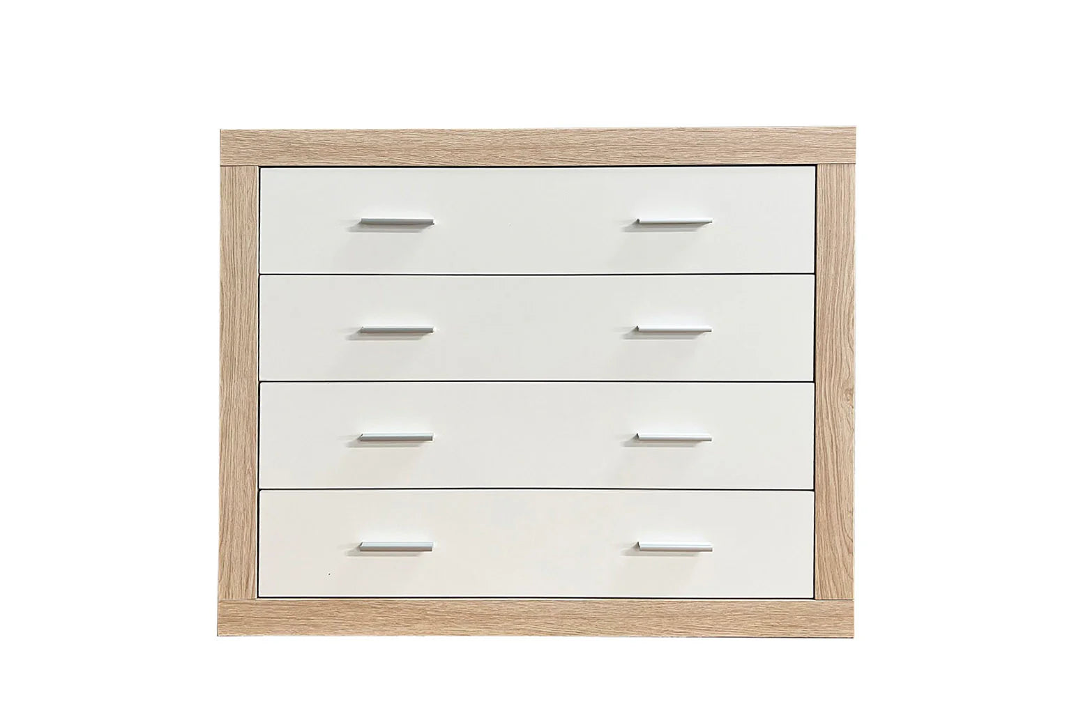 Organiza tu ropa con estilo y practicidad con nuestra cómoda de la colección KIARA. Con cuatro amplios cajones, esta pieza te ofrece espacio de almacenamiento generoso para tus prendas y accesorios, mientras que su diseño en blanco y cambria agrega un toque de elegancia a tu dormitorio.