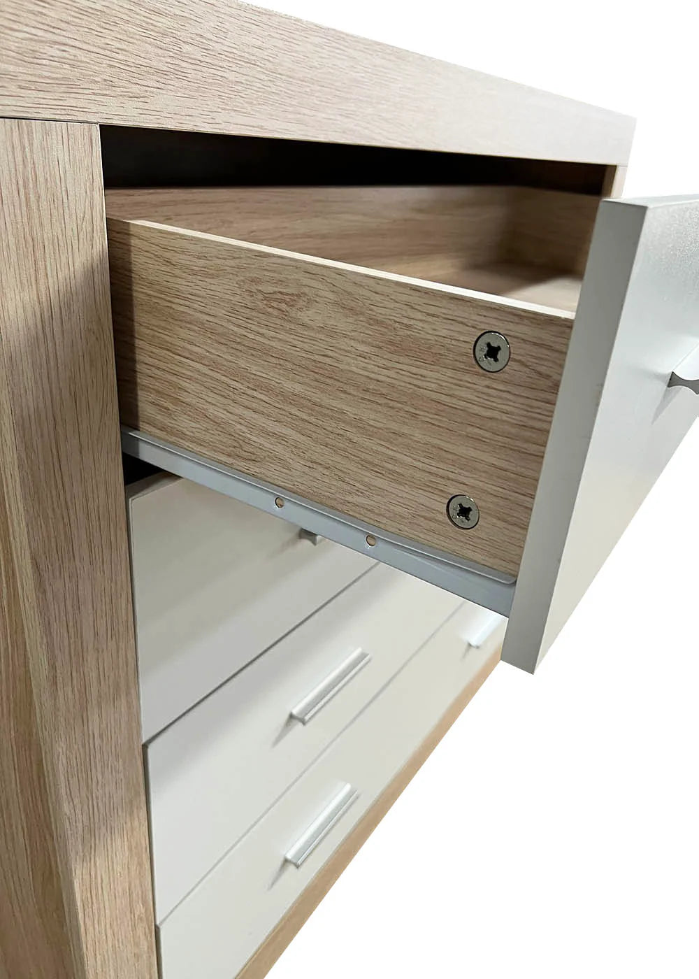 Fabricada con materiales de alta calidad, esta cómoda combina funcionalidad y belleza, proporcionando una solución duradera para mantener tu espacio ordenado y organizado. Ideal para complementar cualquier estilo de decoración, esta cómoda es un imprescindible en tu dormitorio. Facil Montaje.