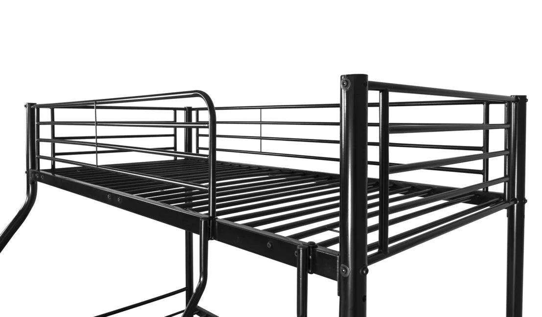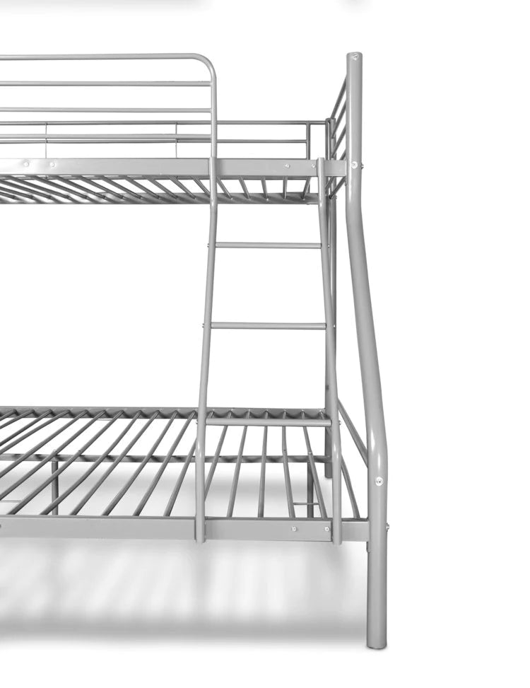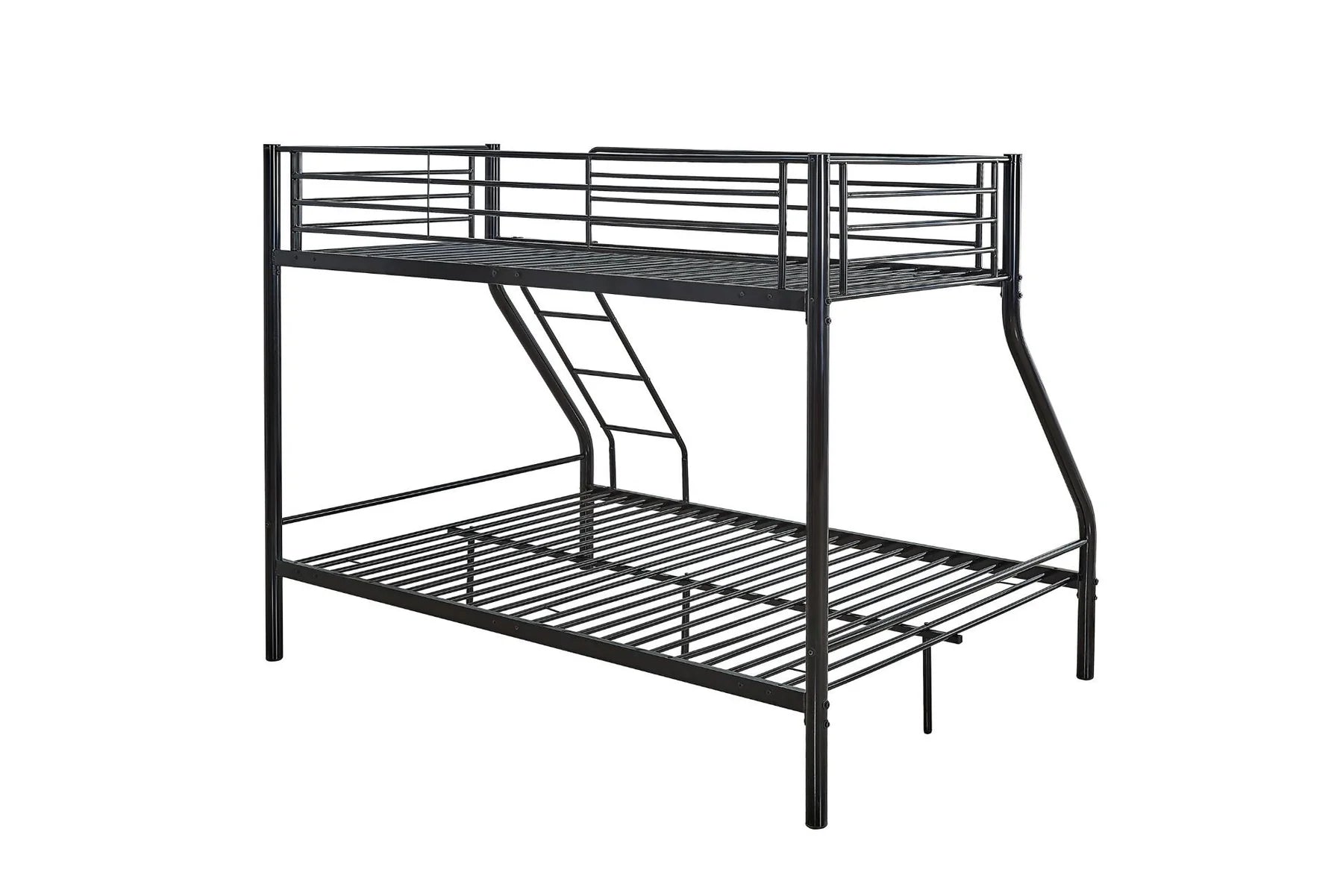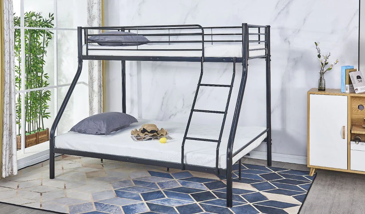 Litera doble con una estructura metálica con cama de matrimonio abajo e individual arriba. Esta litera es perfecta para espacios reducidos y se adecua perfectamente a cualquier estilo de decoración. Marco de metal resistente, seguro y duradero que proporciona comodidad y apoyo necesarios.