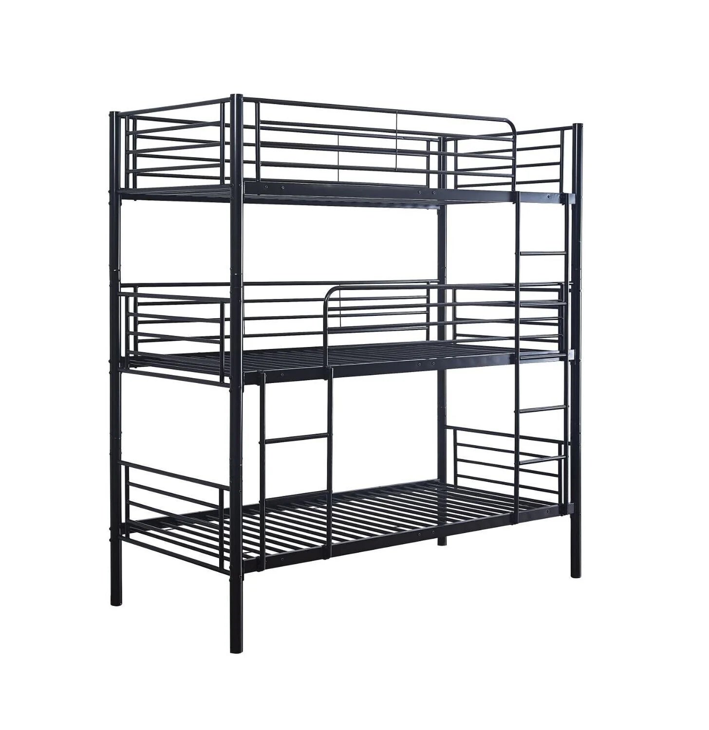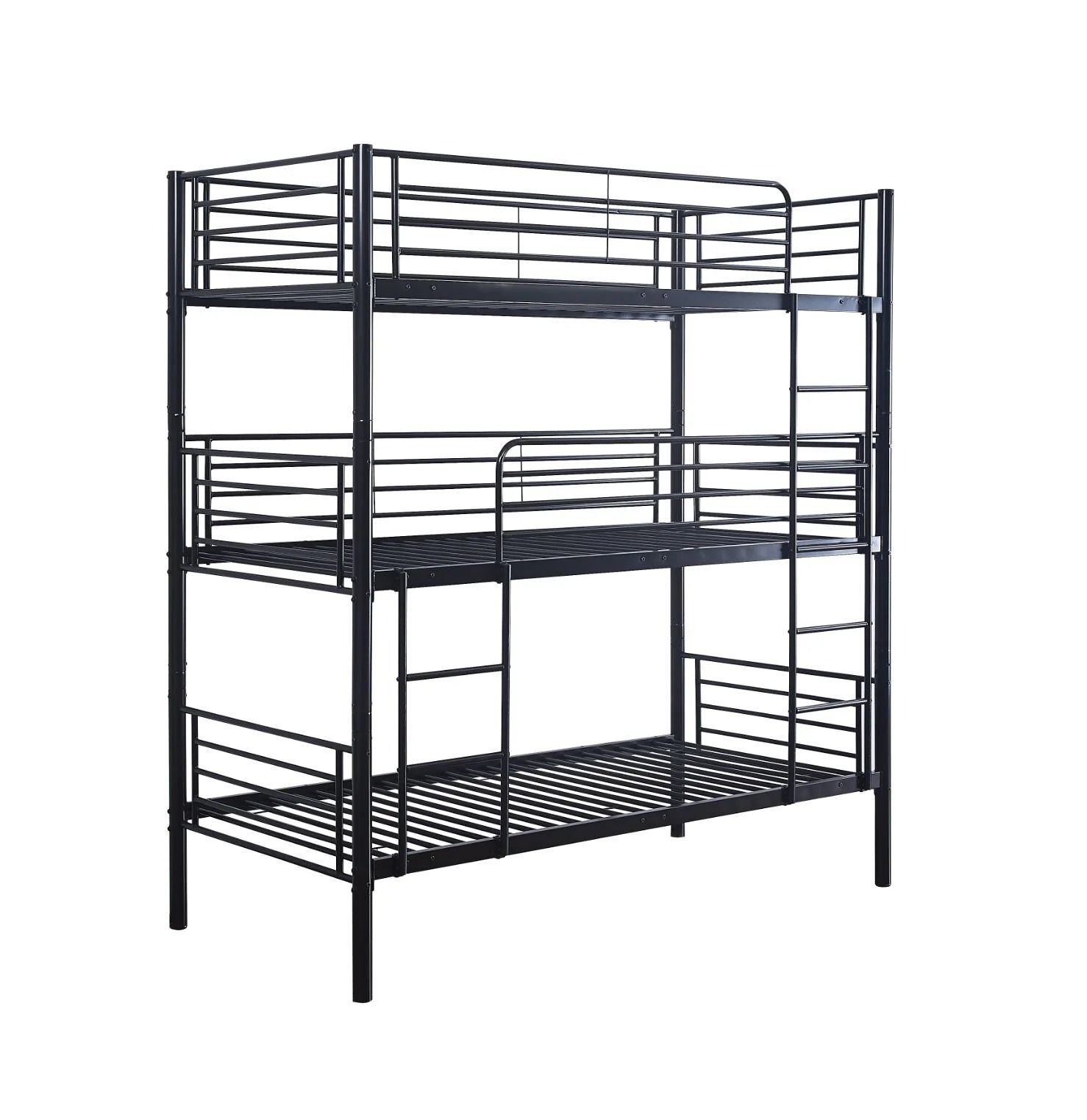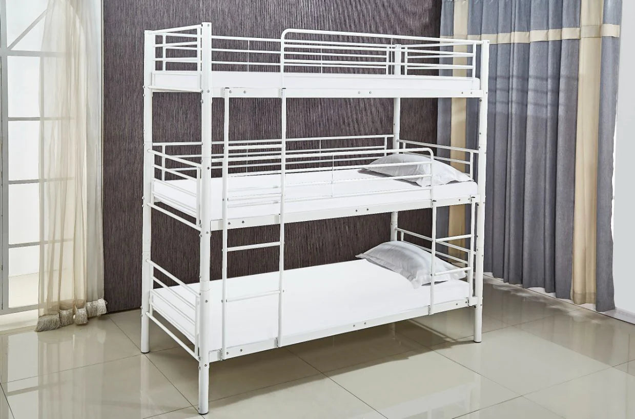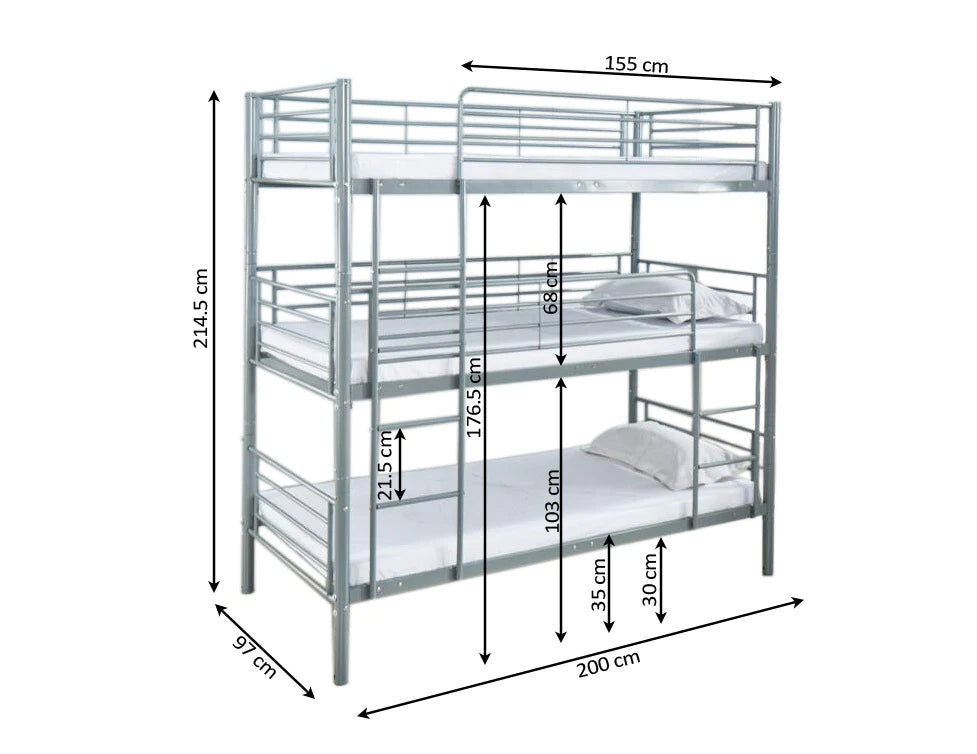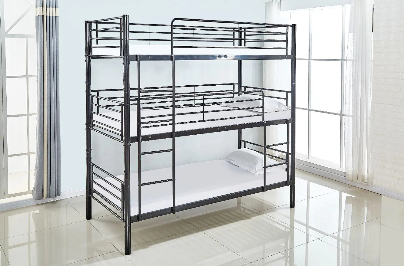 Litera Triple Metalica para Camas de 90x190cm. Con una estructura metalica, esta litera se adecua perfectamente a cualquier estilo de decoracion. Por sus caracteristicas es ideal para optimizar el espacio. Marco de metal resistente, seguro y duradero que proporciona comodidad y apoyo necesarios.