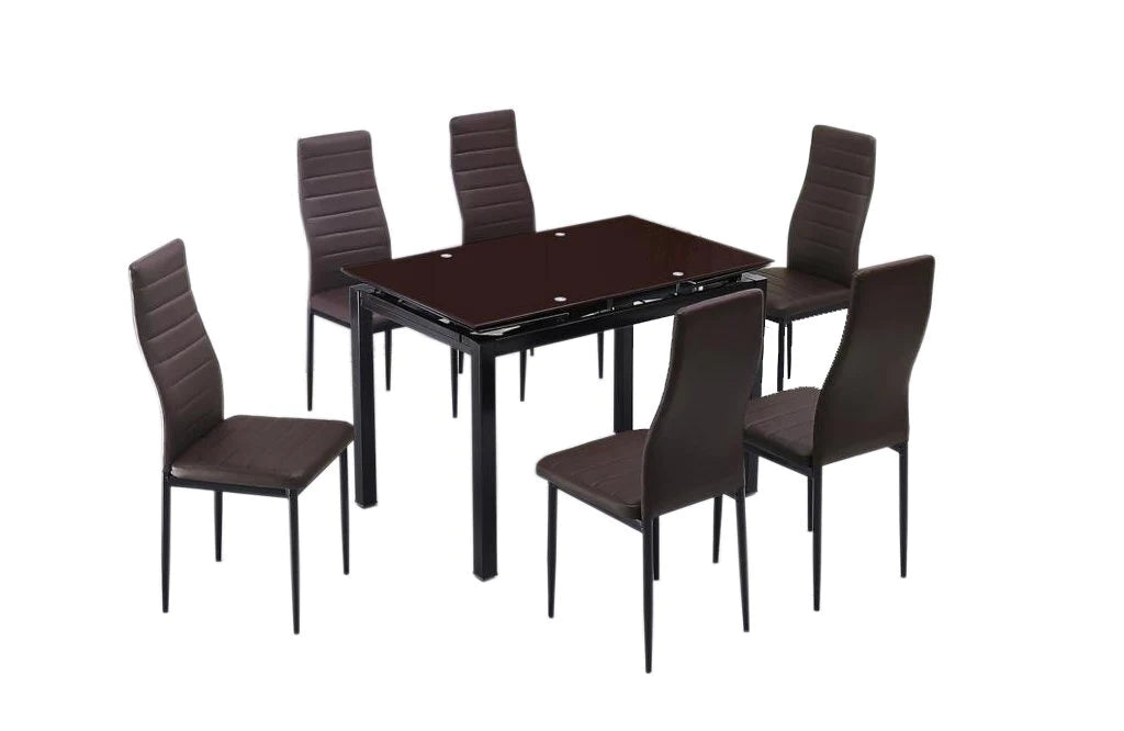 Mesa de Cristal Extensible 170x70cm + 6 Sillas