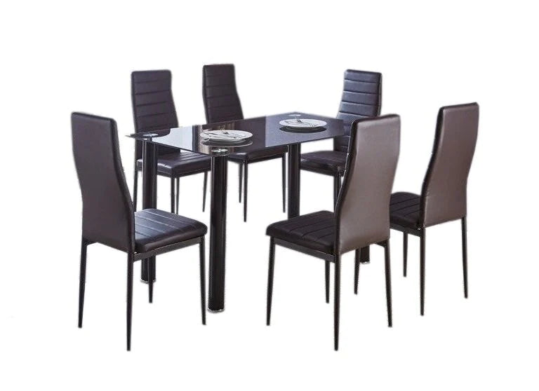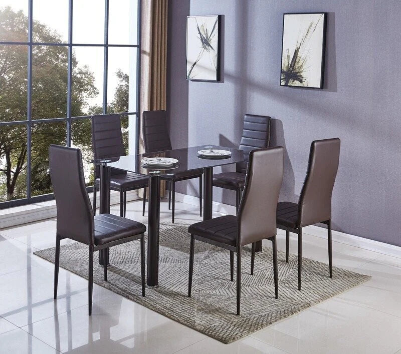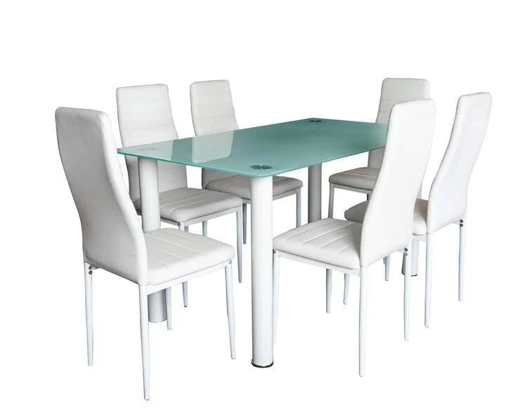 Mesa de Cristal Templado + 6 Sillas Polipiel. Comedor o Cocina