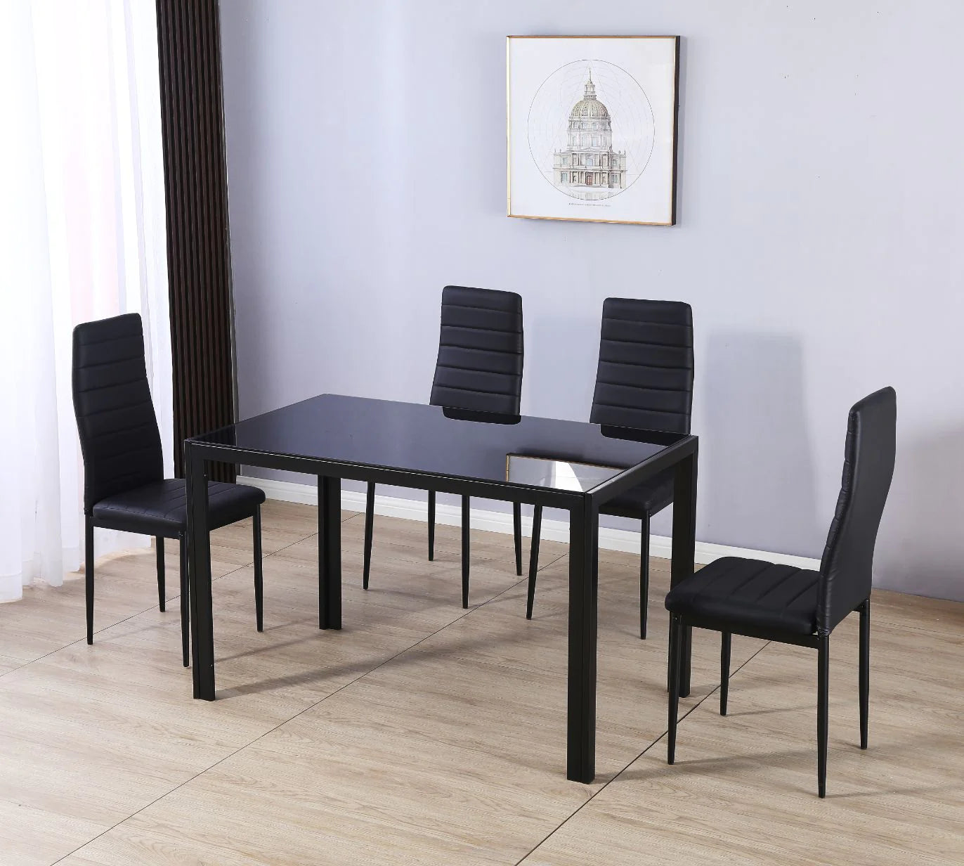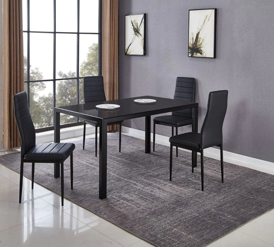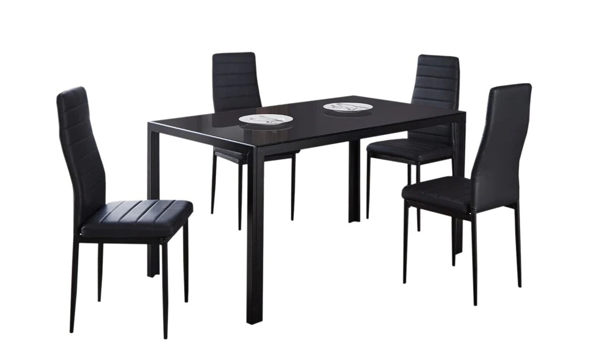 Mesa de Cristal Templado 120x70cm + 4 Sillas Polipiel. Comedor o Cocina