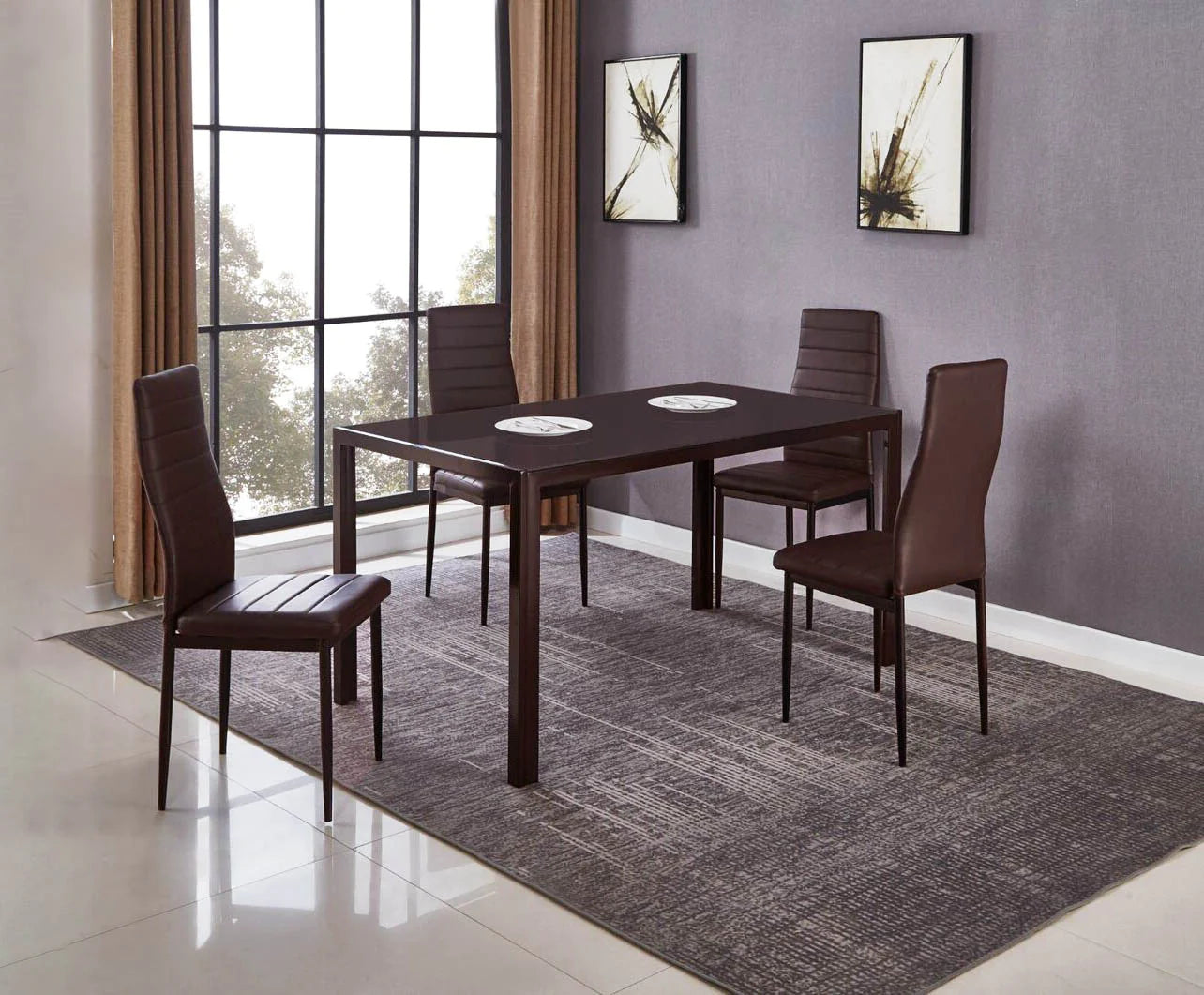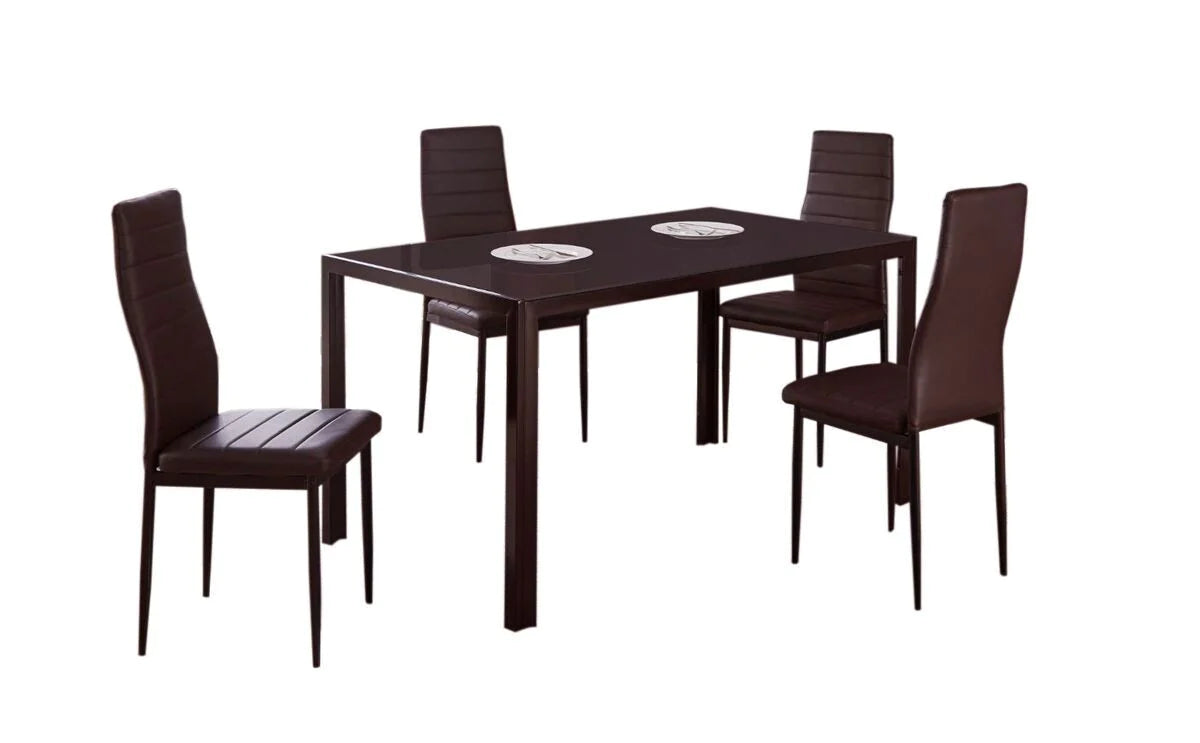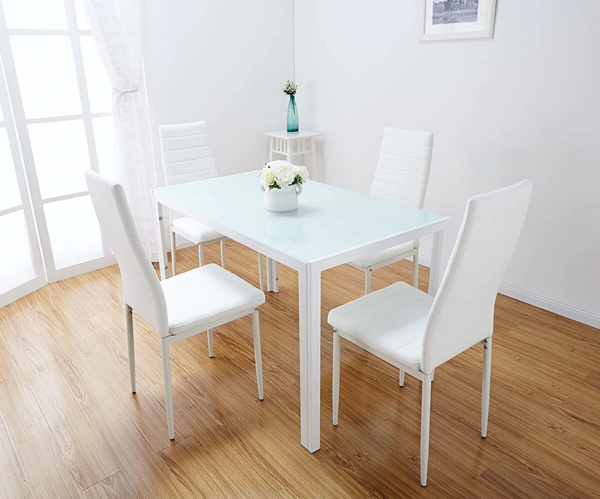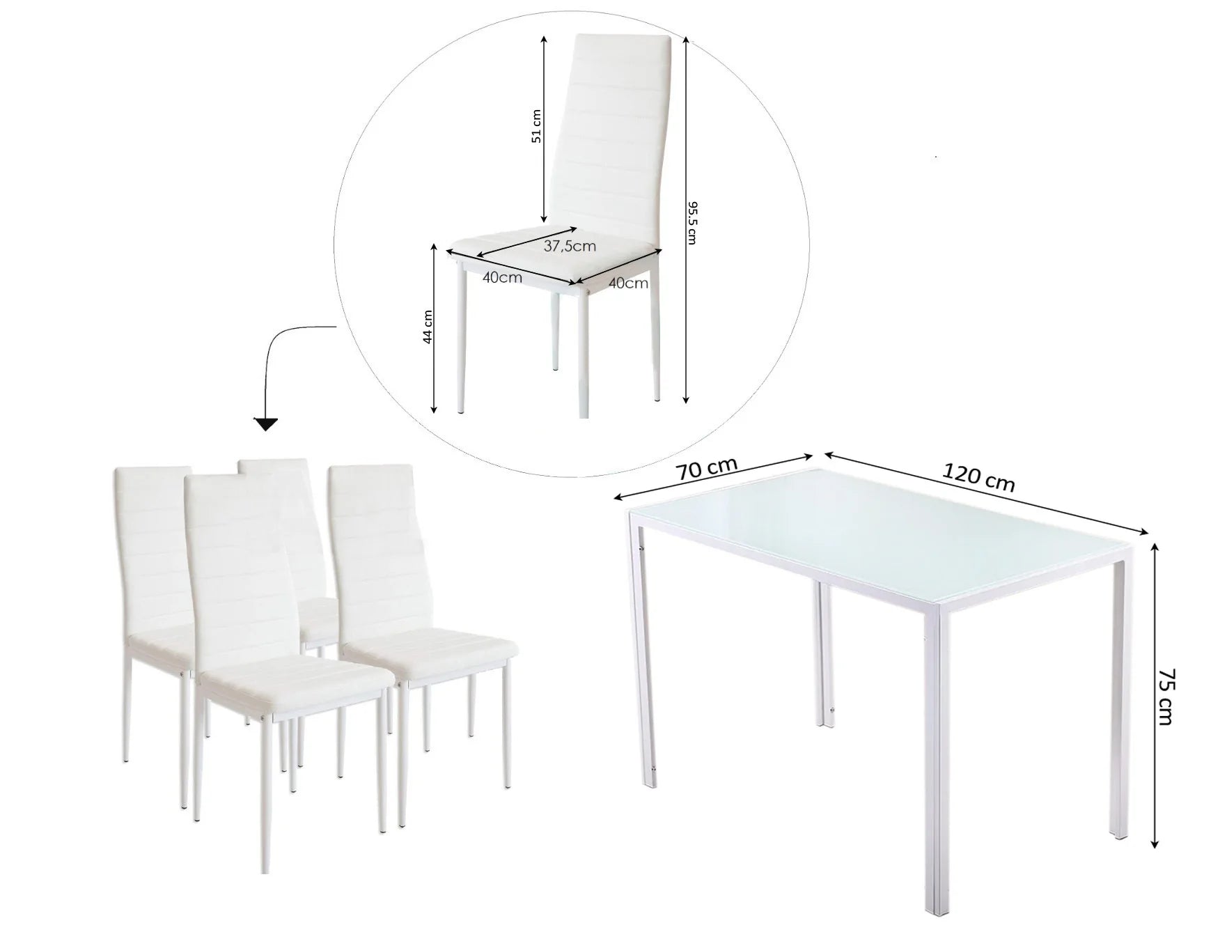 Las patas metalicas de la mesa son elegantes y modernas, lo que añade un toque de estilo a cualquier espacio de comedor. Las 4 sillas a juego son un complemento perfecto para la mesa. Las sillas tienen una estructura de acero resistente y un acolchado suave para garantizar una experiencia comoda al sentarse. Facil montaje y mantenimiento.