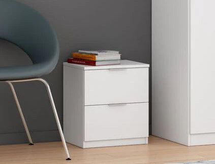 La Mesita de Noche 2 Cajones es una practica y economica mesita de noche con dos cajones con tiradores metalicos. Pensado para los mas jovenes como para adultos, esta mesita se caracteriza por su gran capacidad de almacenaje. Es un mueble perfecto para poder guardar todos tus libros, ropa, manteles, el ordenador portatil, o lo que necesites.