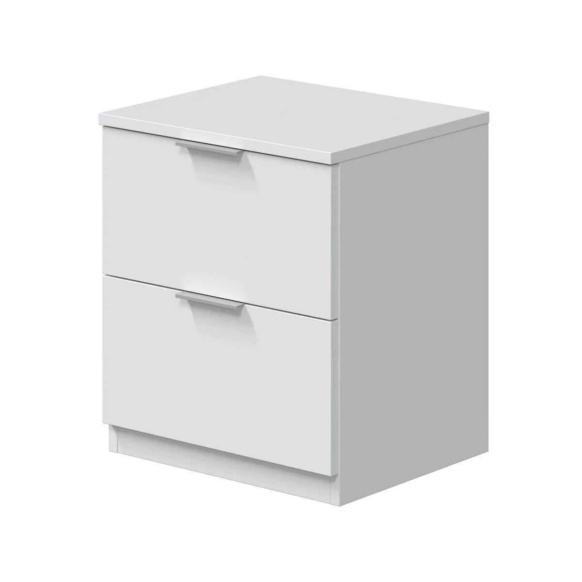 Ademas de su alta capacidad de almacenaje, tambien te proporcionara un espacio lleno de bienestar y modernidad. La Mesita de Noche 2 Cajones 38x45 cm esta fabricada en tablero de particulas melaminizado, y tiene un acabado en blanco.