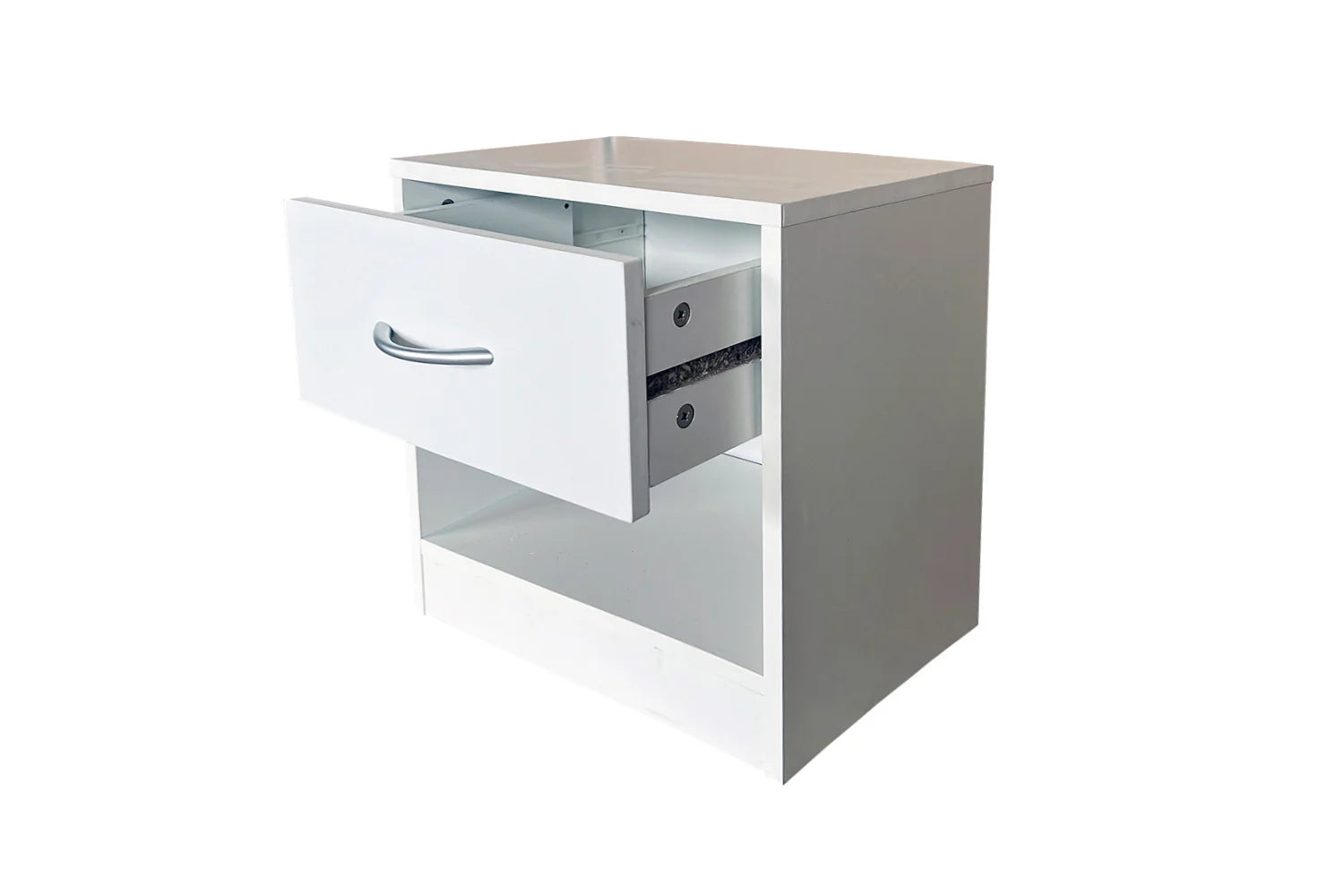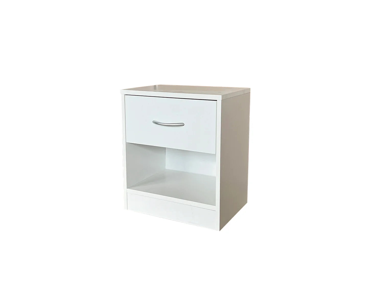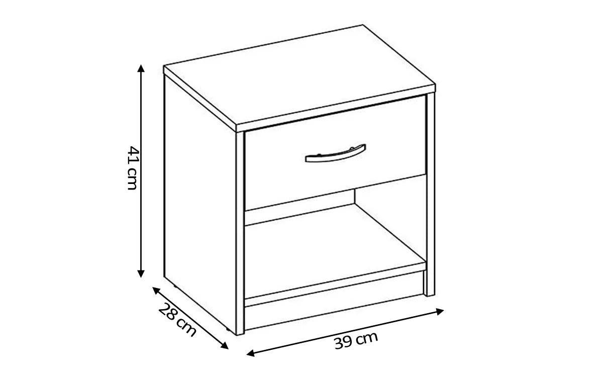 Completa la armonía de tu dormitorio con nuestra encantadora mesita de noche. Equipada con un cajón espacioso y una balda inferior, esta pieza ofrece almacenamiento conveniente para tus objetos personales y libros favoritos. Su diseño elegante y funcional se adapta fácilmente a cualquier estilo de decoración, mientras que su construcción robusta garantiza durabilidad y resistencia a lo largo del tiempo. Aprovecha la oportunidad para mejorar tu espacio con nuestra mesita de noche. Facil montaje.