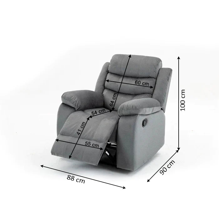Este sillón te brinda la oportunidad de relajarte y desconectar del estrés diario en un abrir y cerrar de ojos. Con su mecanismo de reclinación manual suave y fácil de usar, puedes ajustar el respaldo y el reposapiés a tu gusto personal. Simplemente inclina el respaldo hacia atrás y levanta el reposapiés para encontrar la posición ideal que mejor se adapte a tus necesidades de relajación. Nuestro sillón reclinable está cuidadosamente diseñado con materiales de alta calidad que garantizan su durabilidad y resistencia a lo largo del tiempo. Su estilo contemporáneo y elegante se adapta sin esfuerzo a cualquier decoración existente, añadiendo un toque de sofisticación a tu espacio.