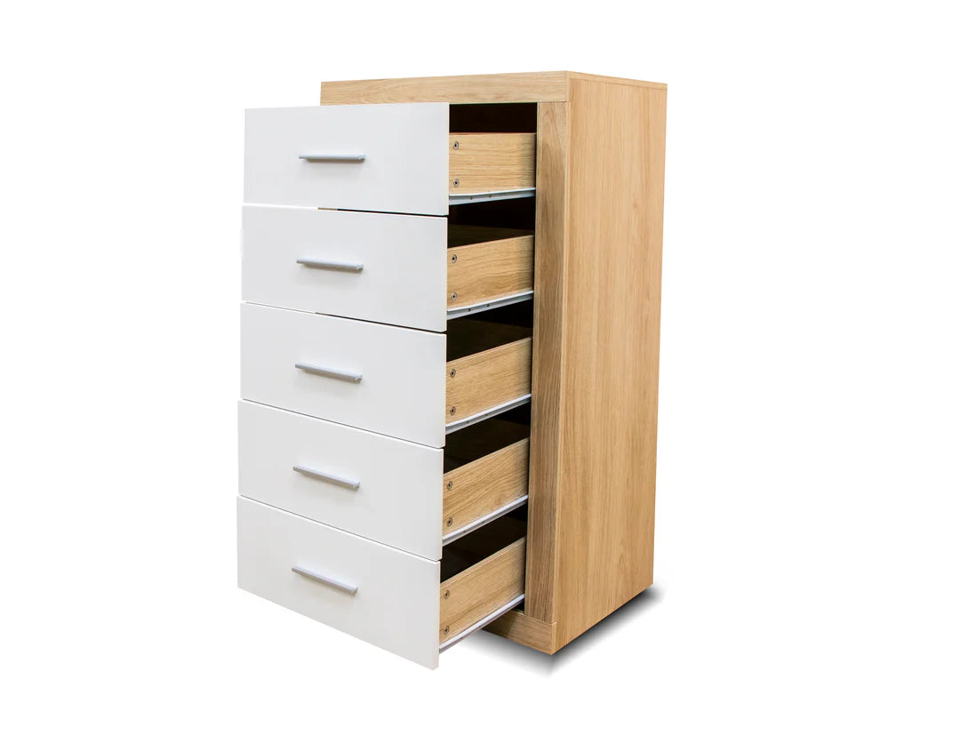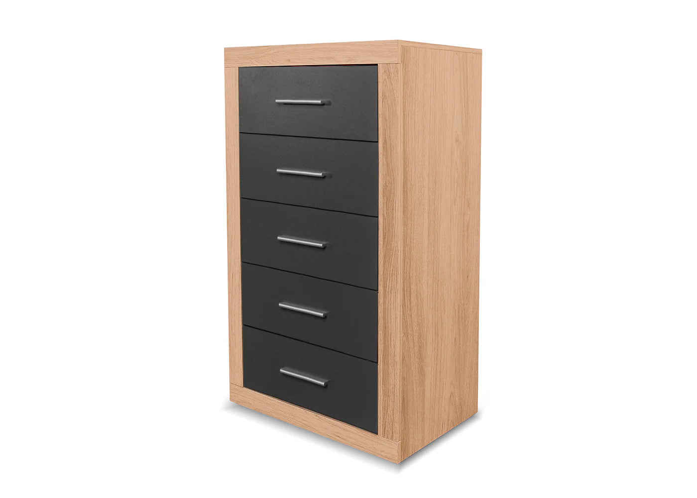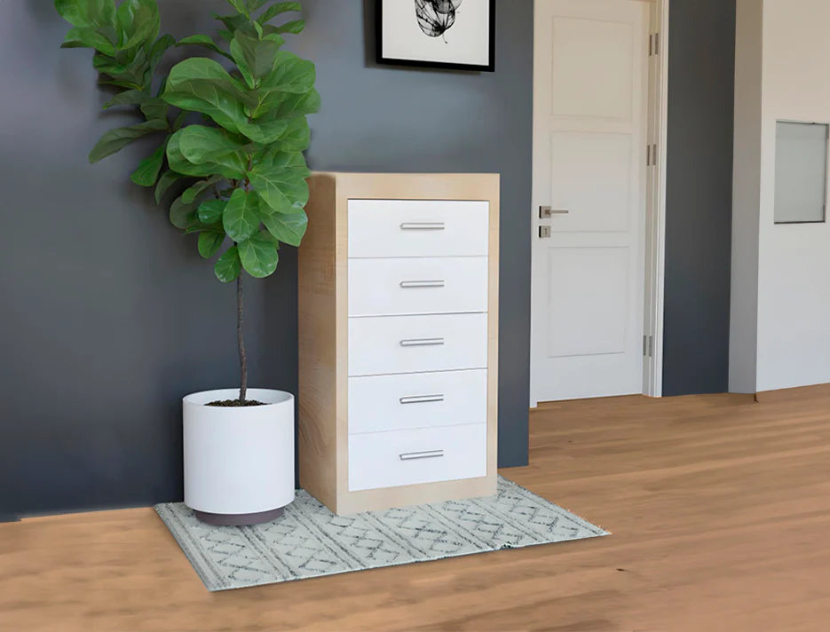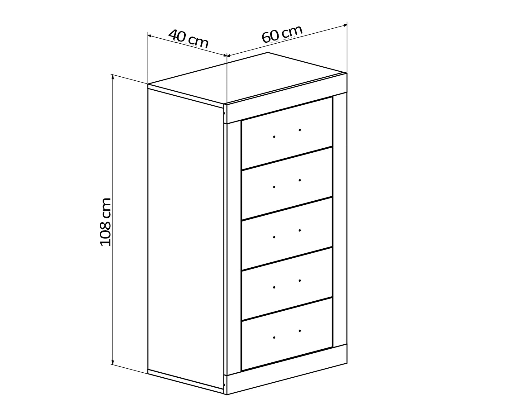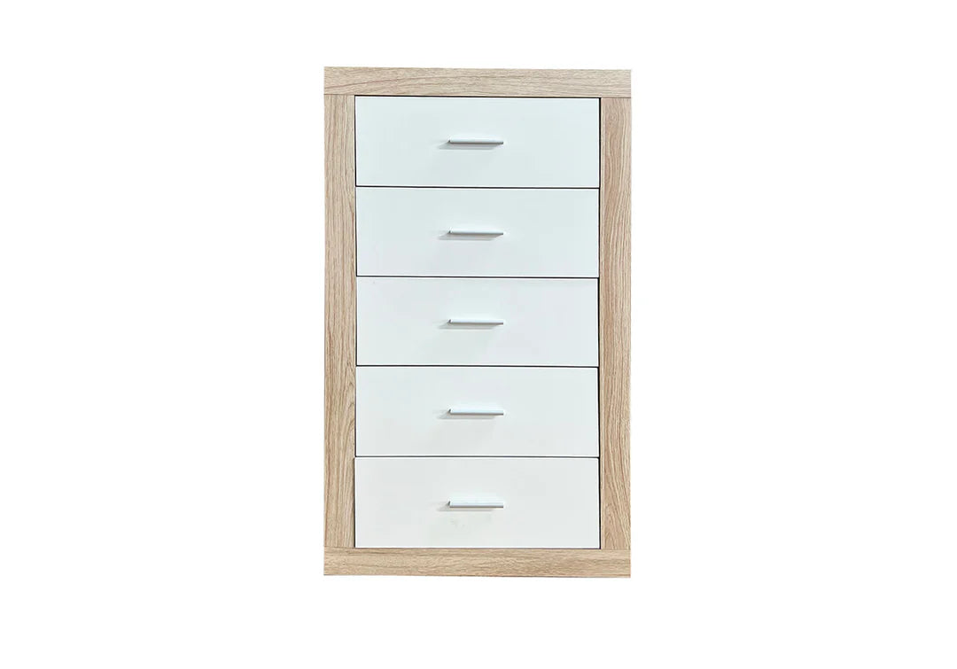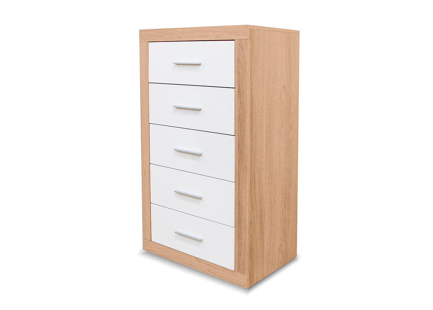 Organiza tu ropa con estilo y elegancia con nuestro sinfonier de la colección KIARA. Con cinco amplios cajones, este mueble ofrece una solución versátil para el almacenamiento de tus prendas, mientras que su diseño en blanco y cambria añade un toque de luminosidad y calidez a tu dormitorio. Fabricado con materiales de alta calidad y acabados impecables, este sinfonier combina funcionalidad y belleza, proporcionando un espacio organizado y estético para tu ropa y accesorios. Su diseño atemporal se adapta fácilmente a cualquier estilo de decoración, convirtiéndolo en un elemento imprescindible en tu hogar. Fácil montaje.