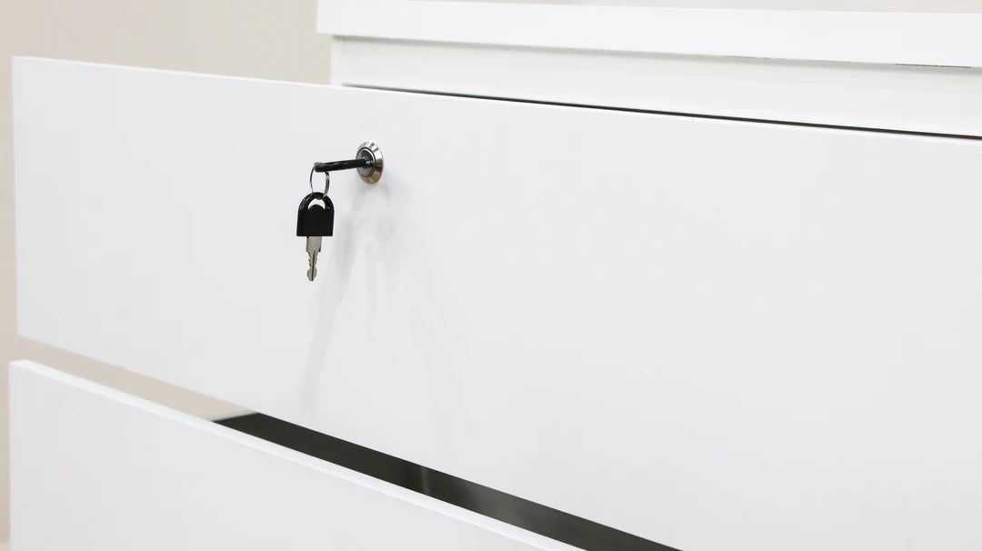 Optimiza tu espacio de almacenamiento con nuestro sinfonier blanco de cinco cajones, con la característica adicional de un cajón con llave para mayor seguridad. Este versátil mueble ofrece una solución elegante y funcional para organizar tus pertenencias de forma segura.