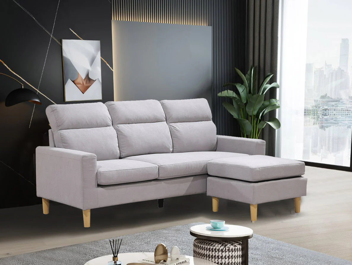 Su versatilidad es inigualable: puedes usar como chaise longue a la derecha o a la izquierda y a la vez separar como sofa + puf/reposapies. El taburete es facil de mover, lo que te permite colocarlo en cualquier lugar que desees, ya sea al lado del sofa o en otra habitacion. En terminos de calidad, nuestro sofa esta hecho con los mejores materiales, asegurando durabilidad y resistencia. Facil Montaje.
