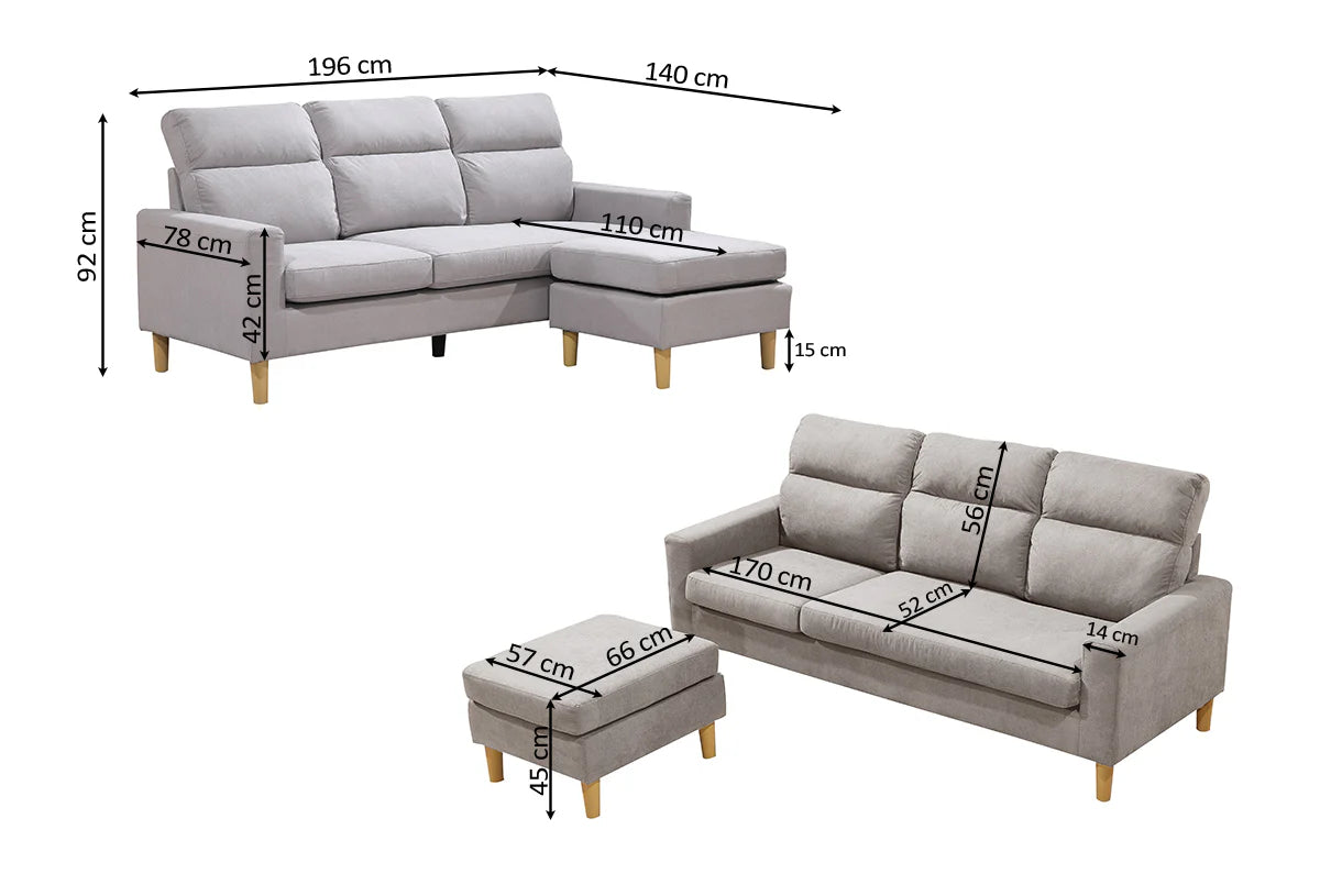 Sofa Agora + Puff Convertible en Chaise Longue 196cm