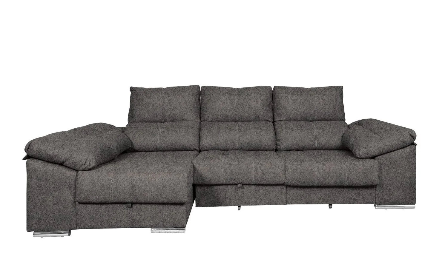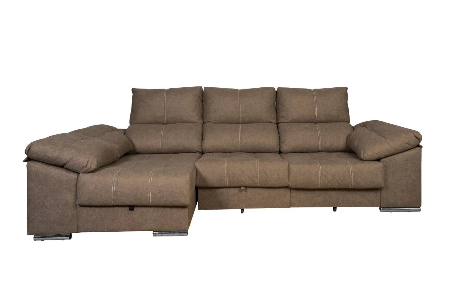 Sofa Cama Chaise Longue 275x140cm. Reclinable, con Arcon +2 pufs
