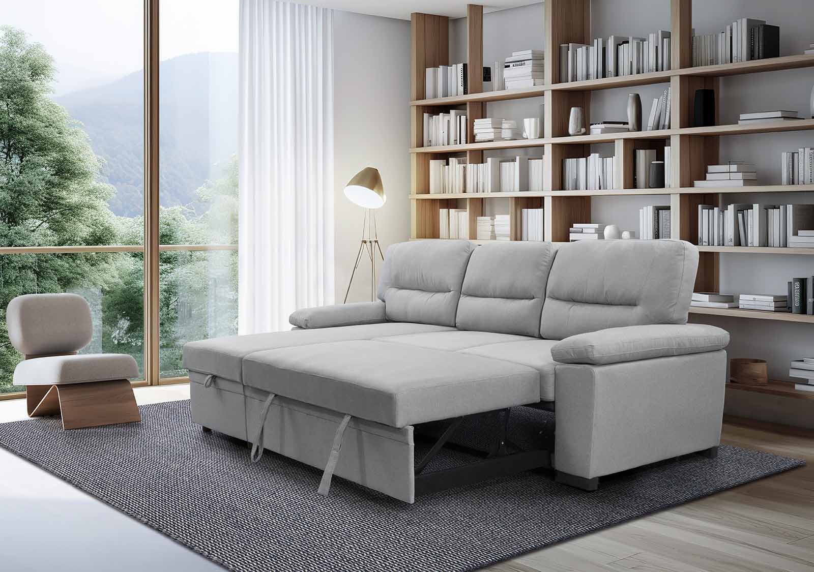 El Sofa Cama Chaise Longue Emma representa la combinación ideal para espacios versátiles. Este elegante modelo de 3 plazas transforma tu salón con sus asientos deslizantes que se convierten en cómoda cama sin esfuerzo. Aprovecha al máximo cada centímetro gracias al práctico arcón incorporado en el módulo chaise longue, perfecto para almacenar ropa de cama o cojines. Su robusta estructura de madera maciza y tablero de partículas garantiza durabilidad, mientras que su diseño reversible te permite colocar la chaise longue donde prefieras. Disfruta de su sencillo montaje y de la funcionalidad que mereces.