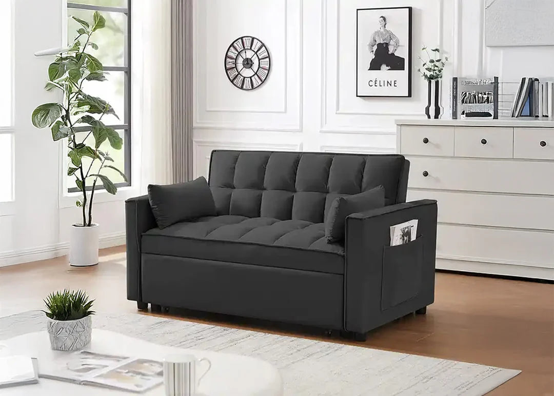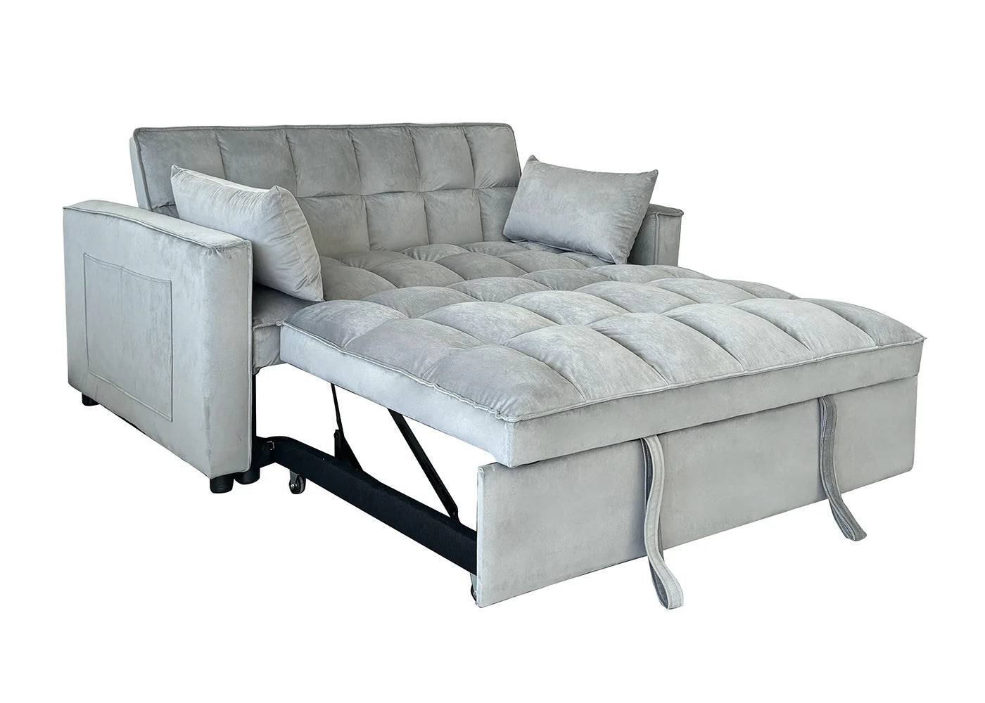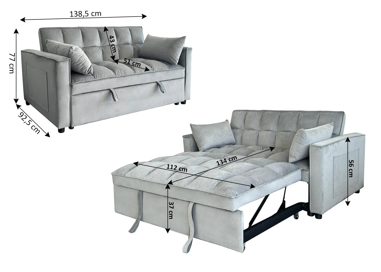 Este sofá cama de matrimonio es la combinación perfecta de elegancia, confort y funcionalidad en un solo mueble. Su moderno diseño tapizado en un sofisticado tejido terciopelo se adapta a cualquier espacio y su mecanismo de apertura deslizante la convierte fácilmente en una amplia y cómoda cama. Es ideal para salones, apartamentos o habitaciones de invitados, además de tener medidas compactas y gran comodidad para tu hogar. ¡No pierdas la oportunidad de tener la mejor combinación entre estilo y funcionalidad en tu hogar! Fácil montaje.