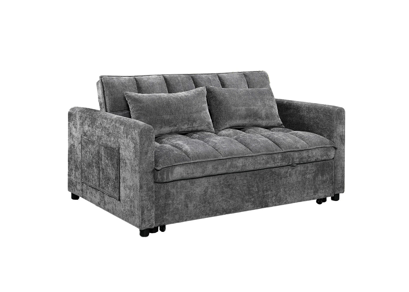 Este sofá cama de matrimonio combina elegancia, confort y funcionalidad en un solo mueble. Tapizado en un sofisticado tejido gris, su diseño moderno se adapta a cualquier espacio. Con un mecanismo de apertura deslizante, se convierte fácilmente en una cama amplia y cómoda. Ideal para salones, apartamentos o habitaciones de invitados, ofrece almacenamiento práctico en su interior. Medidas compactas y gran comodidad para tu hogar. ¡Haz tu compra ahora y disfruta de la mejor combinación entre estilo y funcionalidad! Facil montaje.