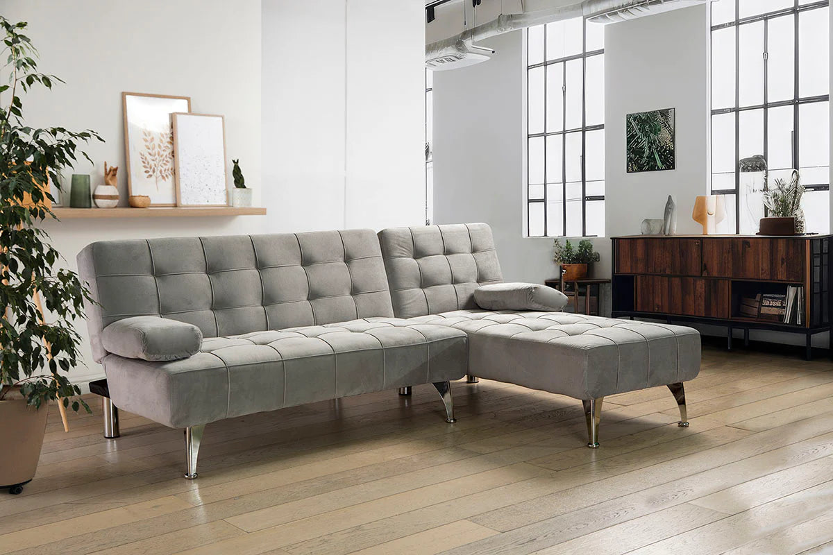 Versatilidad y comodidad se unen en nuestro sofá cama chaise longue modular. Con dos módulos independientes que se pueden montar en el lado que elijas, este sofá se adapta a tu espacio y necesidades. Fabricado con armazon de madera, el Sofa Keren XS es de 3 plazas, tiene acolchado de espuma, patas metalicas y muelles zig-zag. Transforma tu sala de estar en una acogedora zona de descanso o en un lugar para recibir a tus invitados. La combinación perfecta de estilo y funcionalidad en un solo mueble. Fácil montaje.
