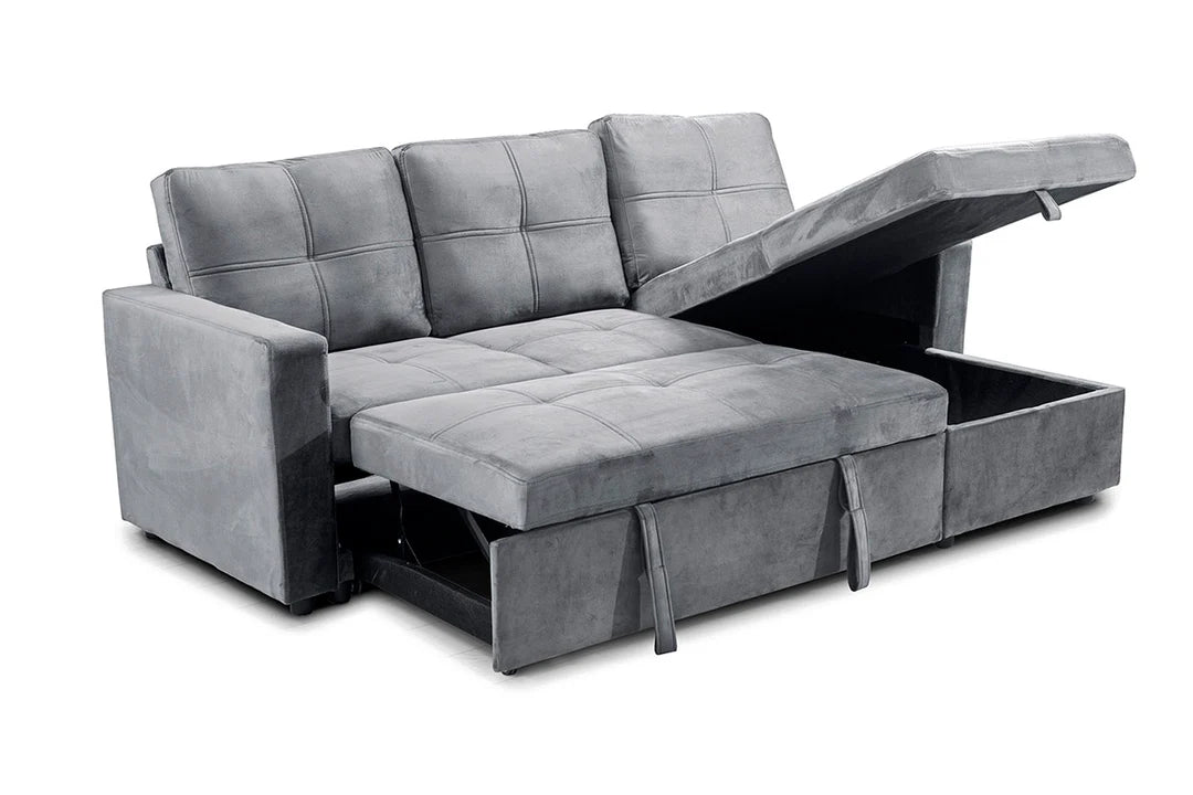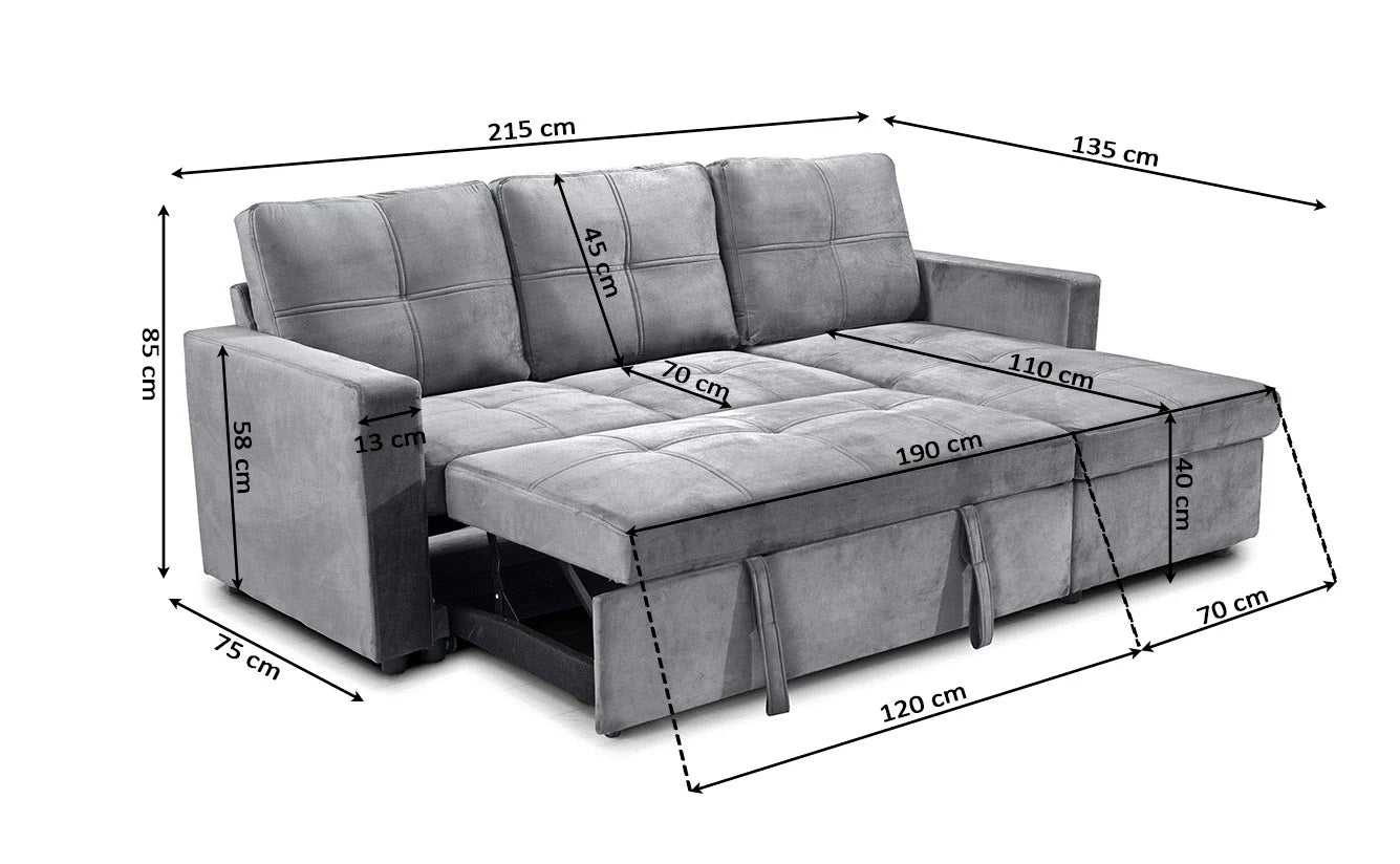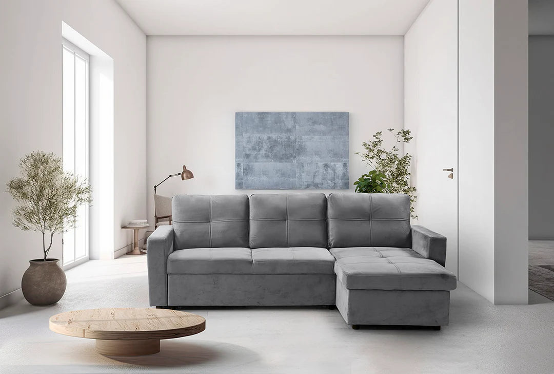Este sofa cama es la opcion perfecta para aquellos que buscan un diseño moderno y elegante para su hogar, con la funcionalidad adicional de un chaise longue reversible y un arcon de almacenamiento integrado. Con solo unos simples movimientos, se convierte en una cama comoda. El chaise longue añade un toque extra de comodidad y estilo al sofa cama Pau, convirtiendolo en un lugar perfecto para relajarse y descansar despues de un Ancho día.